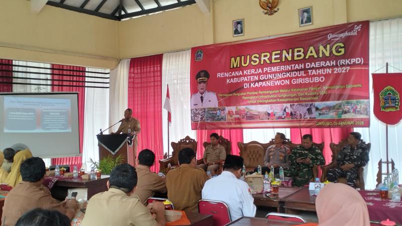 Bupati Gunungkidul Ibu Endah Subekti Kuntariningsih, S.E., M.P. mengingatkan pentingnya memiliki dan menyampaikan persoalan dan potensi dalam data mikro atau terperinci. Hal ini disampaikan oleh Beliau pada sambutan dan arahan Bupati pada Musrenbang RKPD Tahun 2027 yang diselenggarakan oleh Kapanewon Girisubo di Pendopo Kapanewon Girisubo pada Senin, 26 Januari 2026. Dalam kehadirannya Bupati Gunungkidul dibersamai oleh Asisten Sekretaris Daerah, Staf Ahli, dan Kepala OPD serta Badan dan Lembaga Daerah Kabupatèn Gunungkidul yang siap untuk belanja masalah yang dirasakan oleh masyarakat Gunungkidul wilayah tenggara yakni Kapanewon Girisubo.